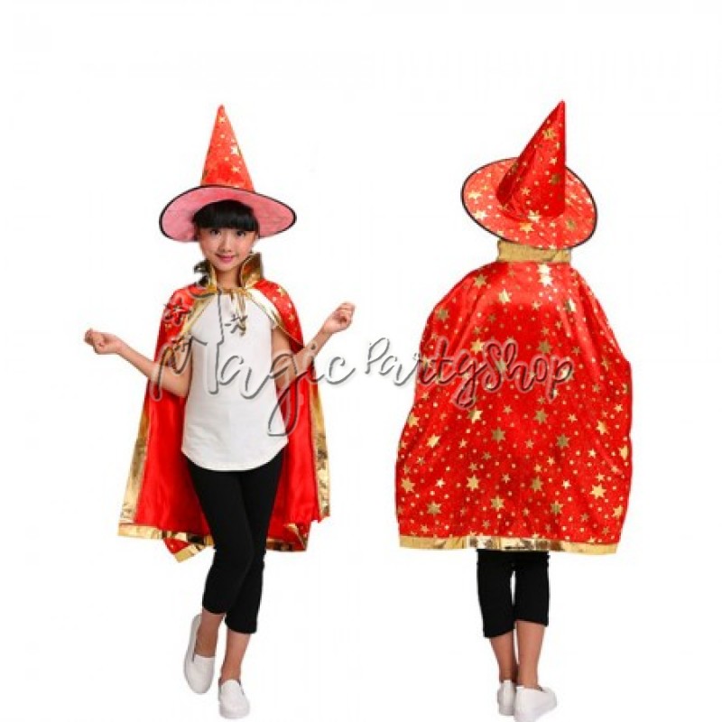 Висота ковпака 38 см, діаметр ковпака з полями: 42 см, довжина плаща: 80см, в комплект входить: ковпак, плащ